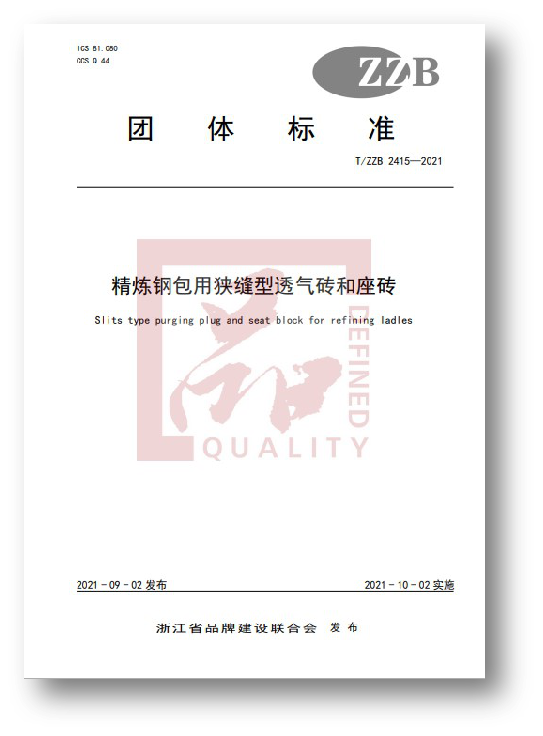 《精煉鋼包用狹縫型透氣磚和座磚》“浙江制造”團體標準